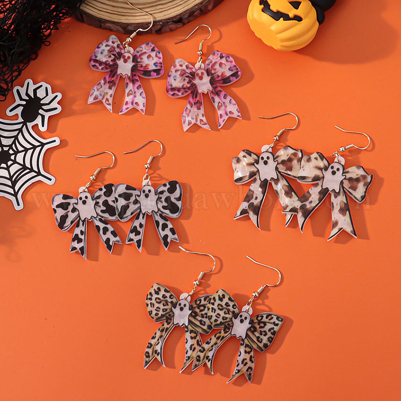 Акриловые серьги-подвески в виде призрака с бантом на Хэллоуин, платина
