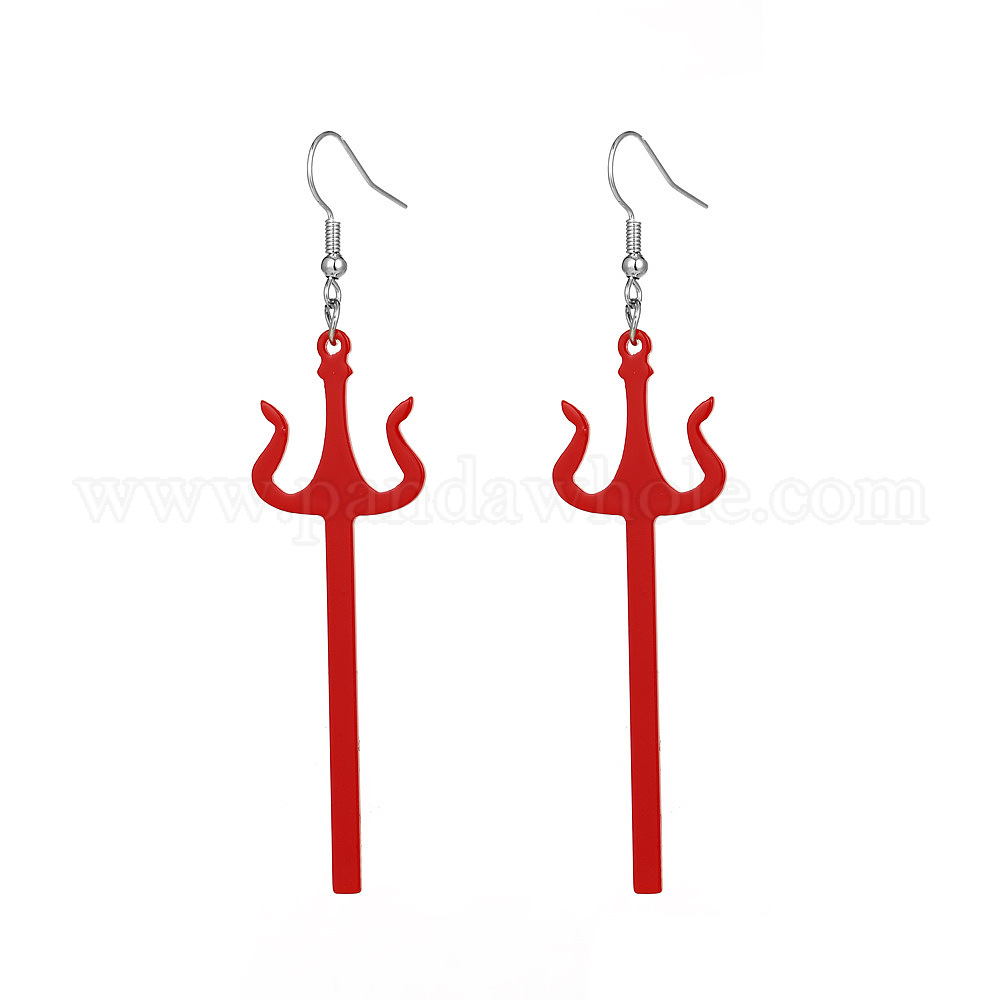 Акриловые серьги-подвески тришула, платина