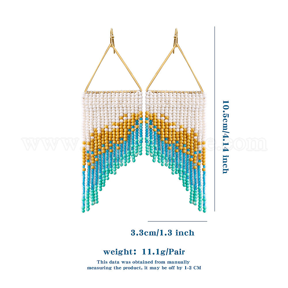 Стеклянные бусины и пластиковые серьги-подвески, золотые