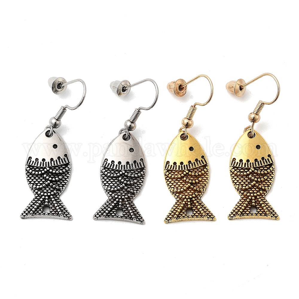 • Античное Серебро Серьги с подвесками из рыбьего сплава, античное серебро, 40x13.5 мм