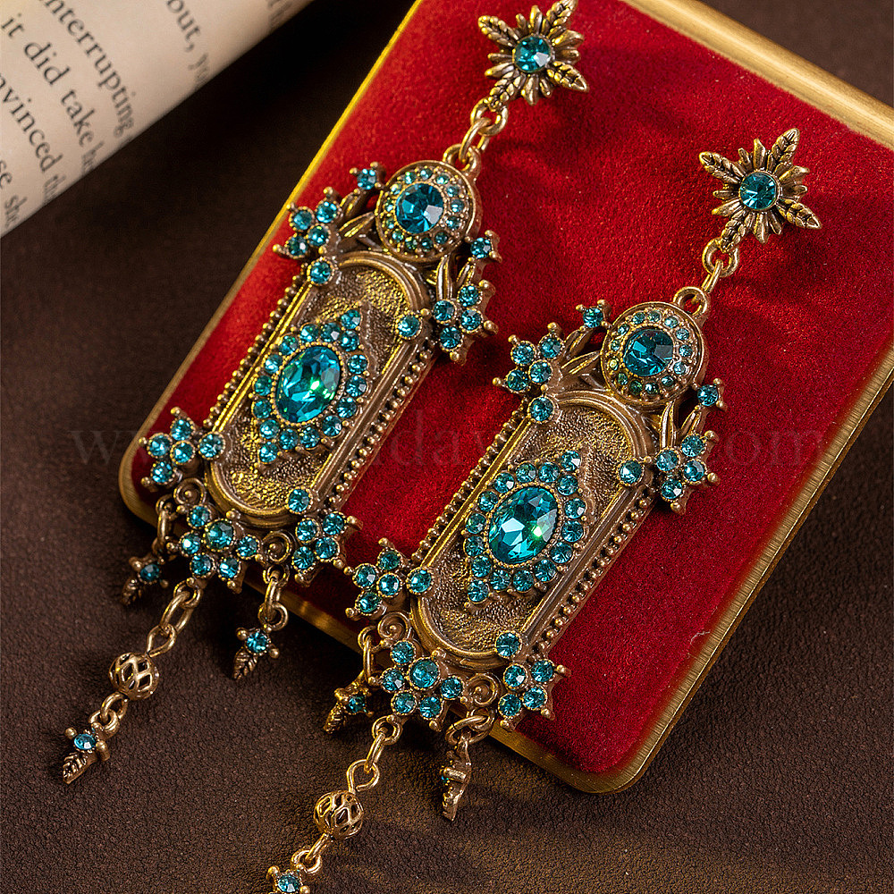 • Темно-Голубой Серьги-подвески из сплава с кубическим цирконием, овальные с цветком, глубокое синее небо, 92x26 мм