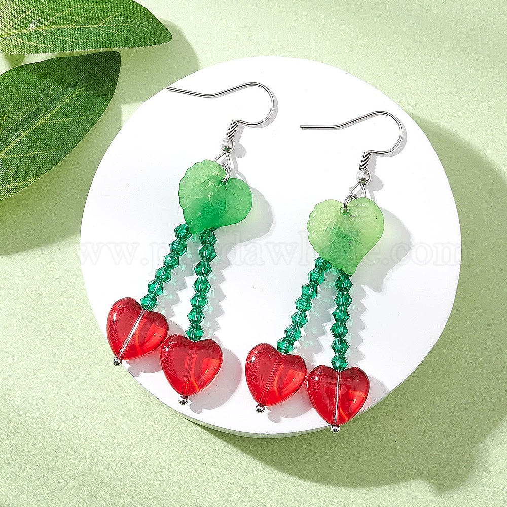 Сердце 304 из нержавеющей стали стеклянные болтаться серьги, с акриловой