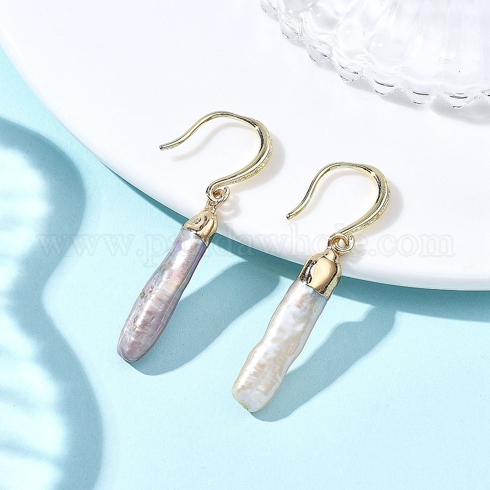Серьги-подвески из натурального жемчуга кеши с гальваническим покрытием, с латунными крючками, колонка