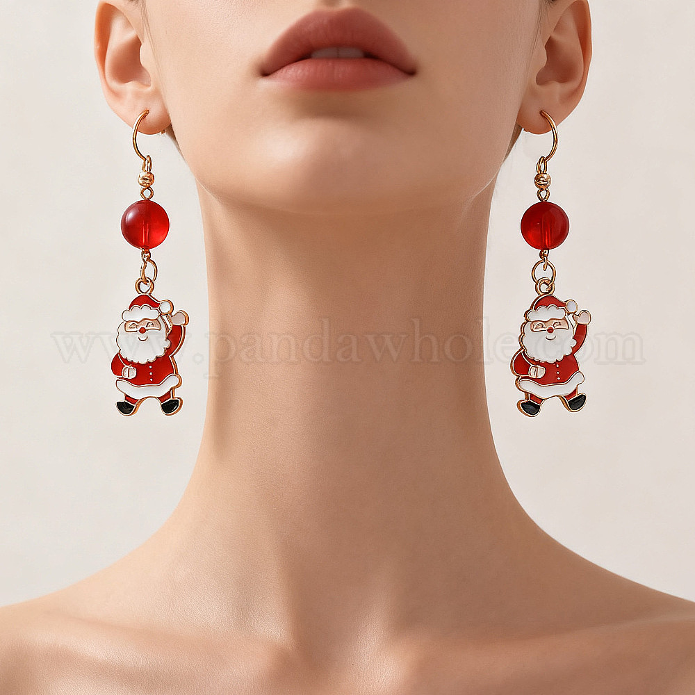 Серьги-подвески в виде Санта-Клауса из эмалевого сплава, со стеклом