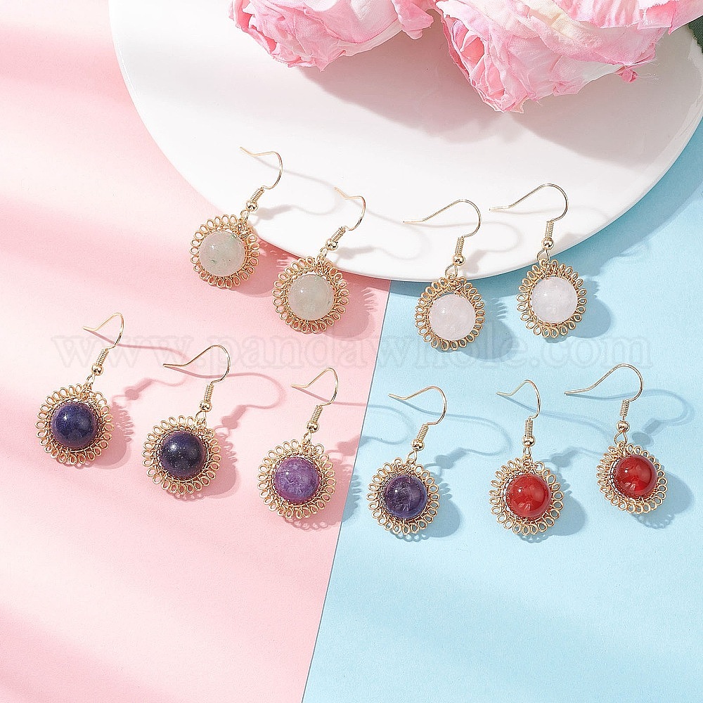 Серьги-подвески с драгоценными камнями и цветами, с латунными крючками для серег, золотые