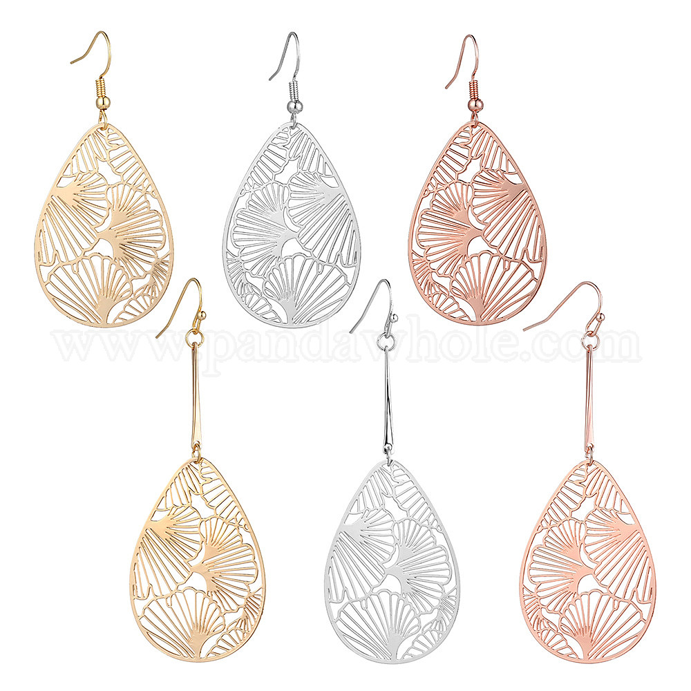 Латунь болтаться серьги, капля с рисунком листьев гинкго