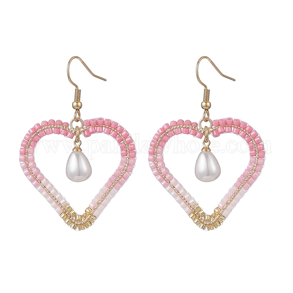 Серьги-подвески в форме сердца 304 из нержавеющей стали с бусинами из стекла, с пластмассовой жемчужиной abs, золотые