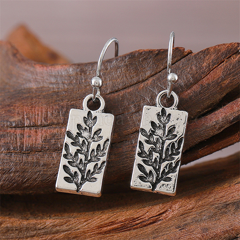 • Античное Серебро Серьги-подвески из цинкового сплава в форме прямоугольника с узором из листьев, античное серебро, 27x8 мм