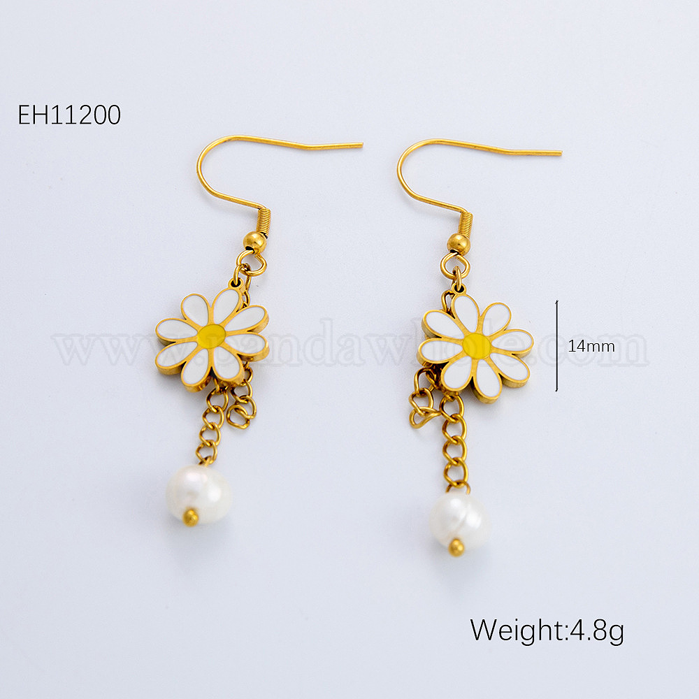 304 из нержавеющей стали эмаль болтаться серьги, с пластиковой жемчужины, цветок