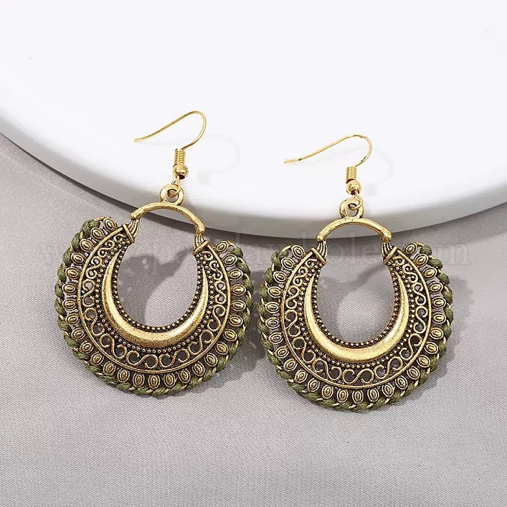 Серьги-подвески из сплава и хлопкового шнура в богемном стиле, плоско-круглые, античная бронза