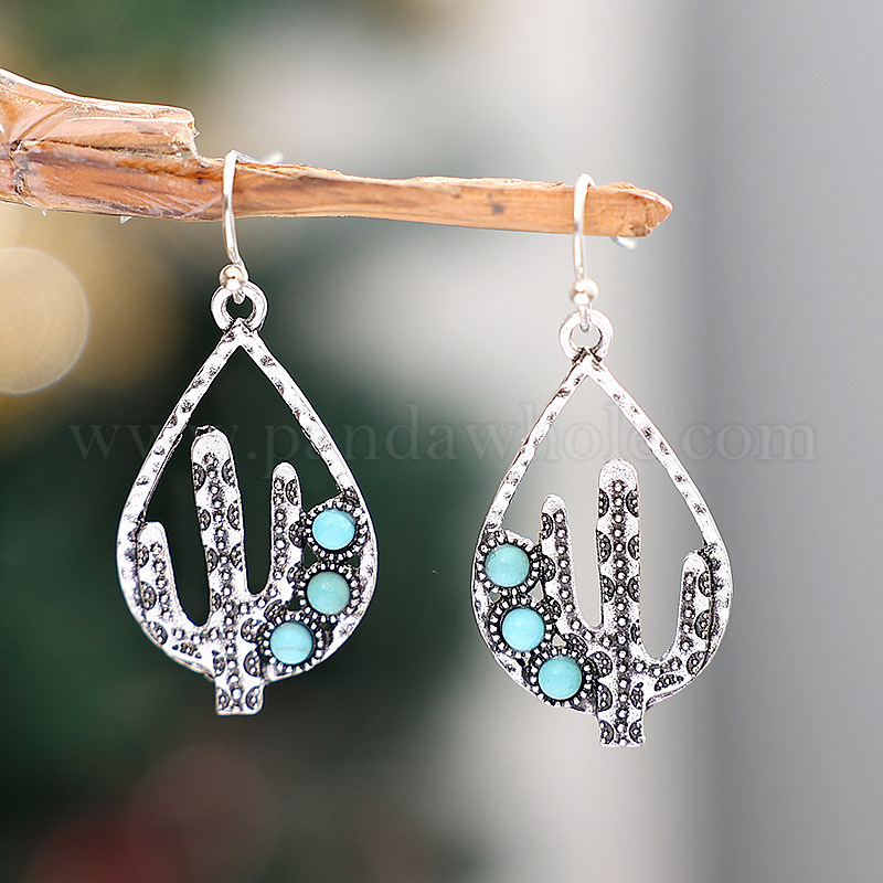 Серьги с подвесками из синтетического бирюзового сплава, кактус