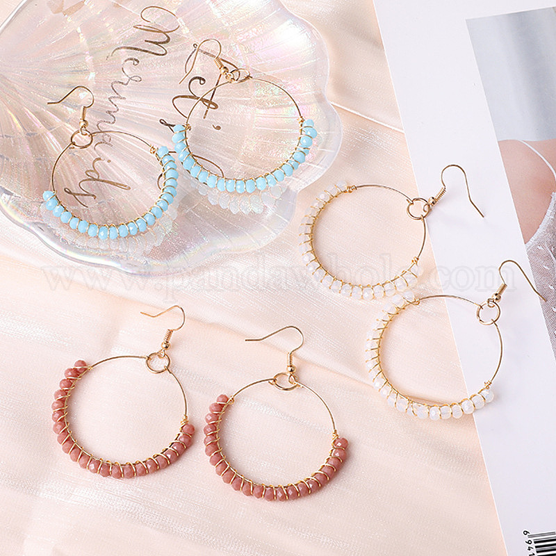 Серьги-подвески в форме ронделя из сплава и стекла, золотые