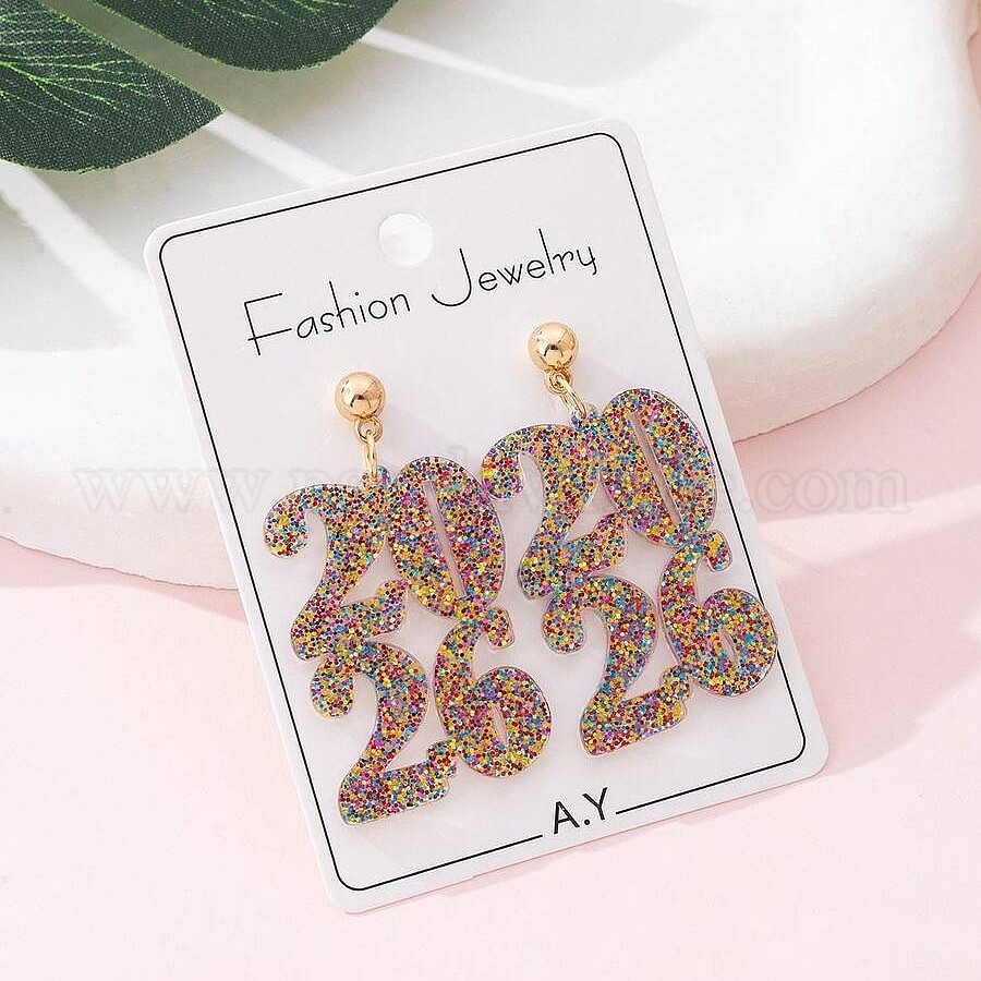 Номер 2026 акриловые серьги-подвески, с блеском порошок, золотые