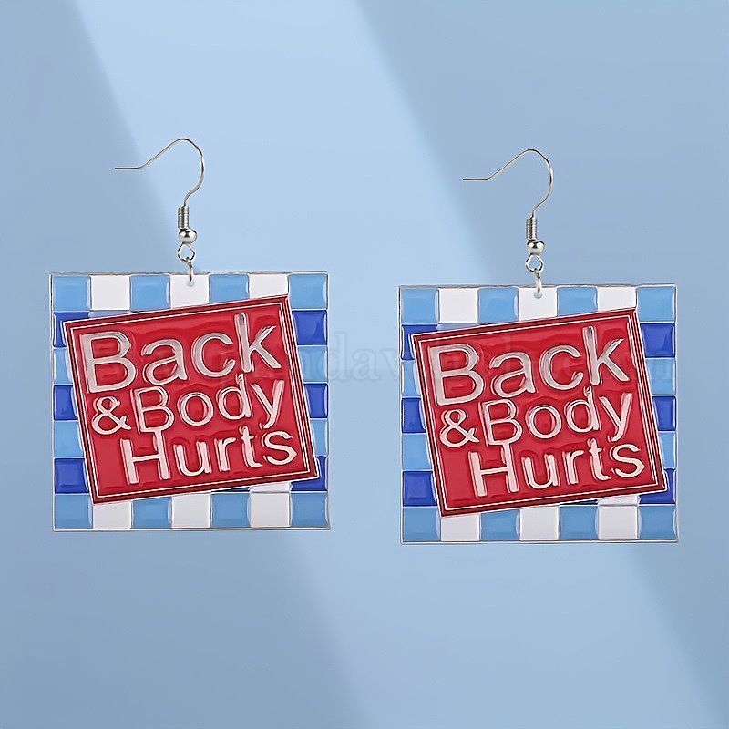 Квадратные акриловые серьги-подвески с надписью «спина и тело болят», платина
