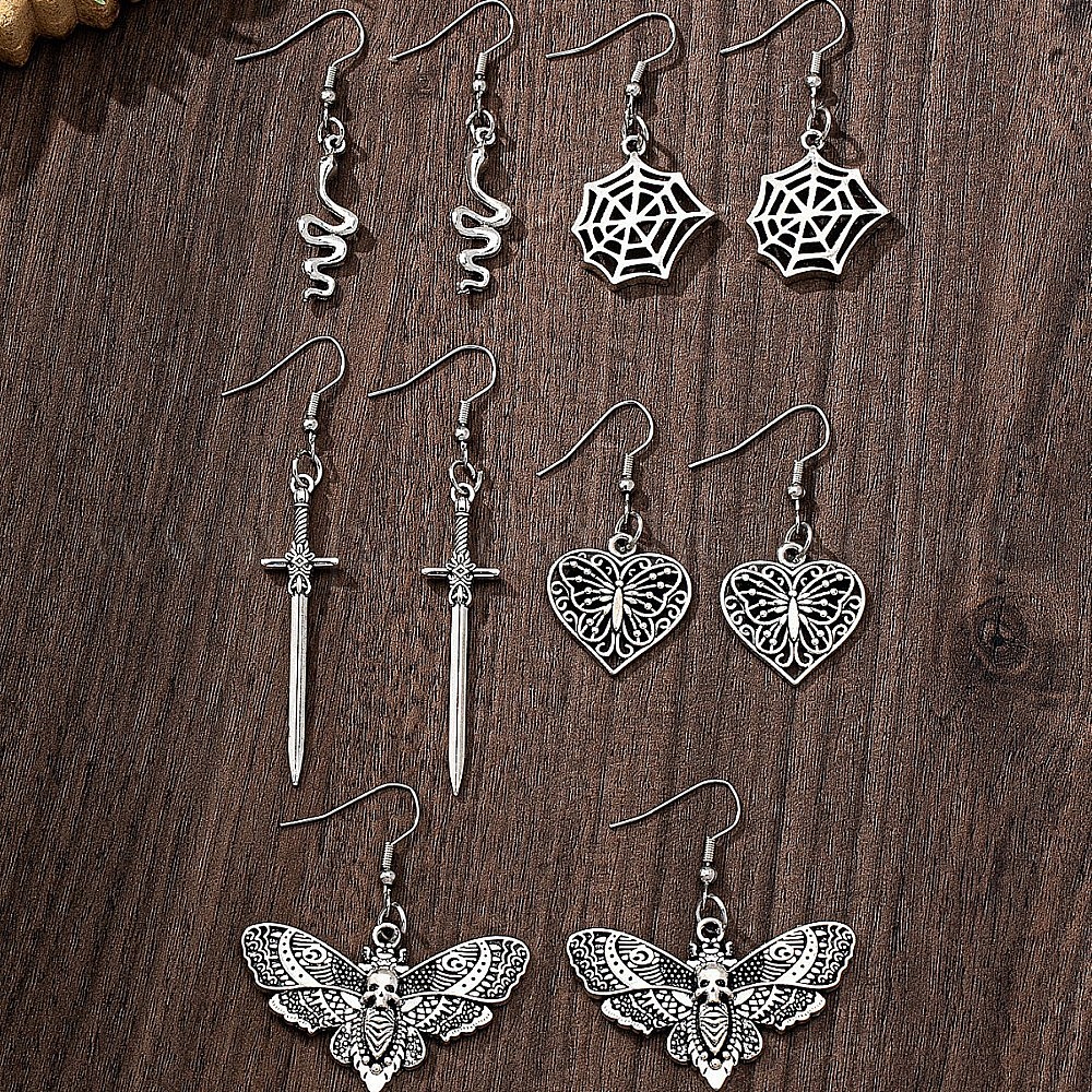 5 Парные серьги-подвески из сплава, разнообразные