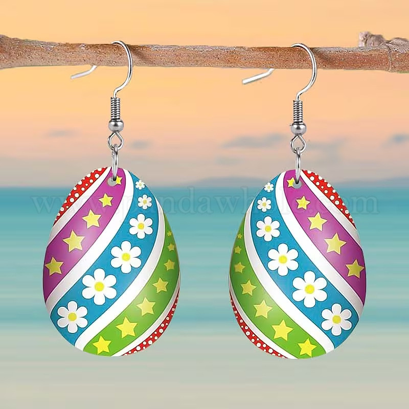 • Разноцветный Акриловые серьги-подвески в виде пасхальных яиц, платина, красочный, 50x21 мм