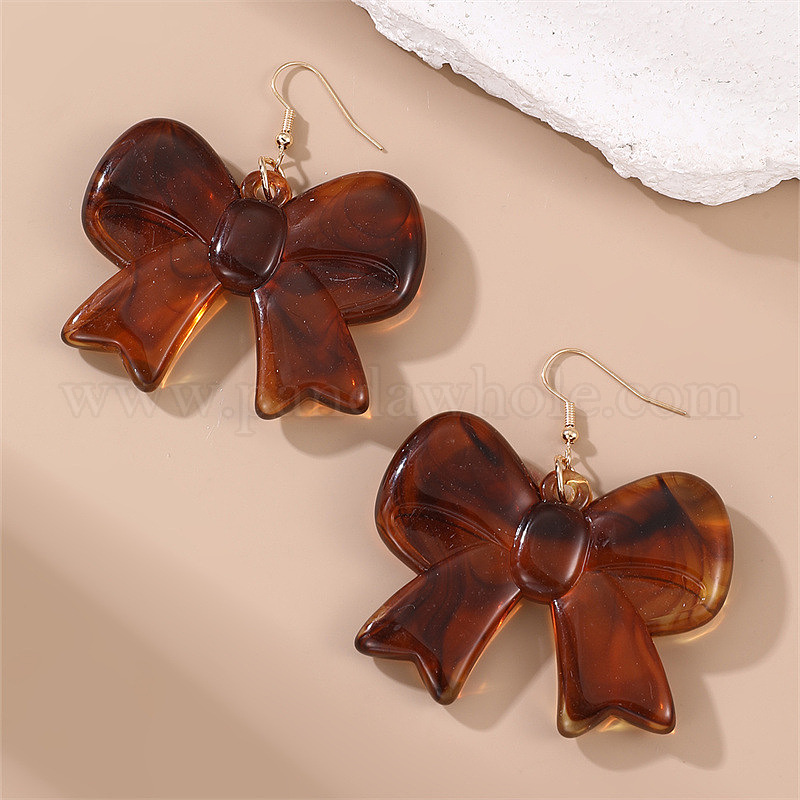 Серьги-подвески в виде бантика из сплава и смолы, золотые