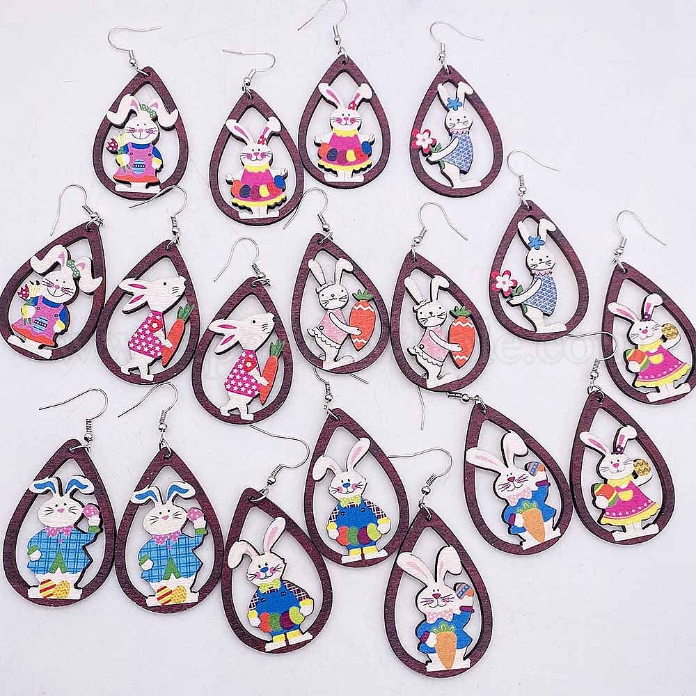 Пасхальные деревянные серьги-подвески, слеза с кроликом, платина