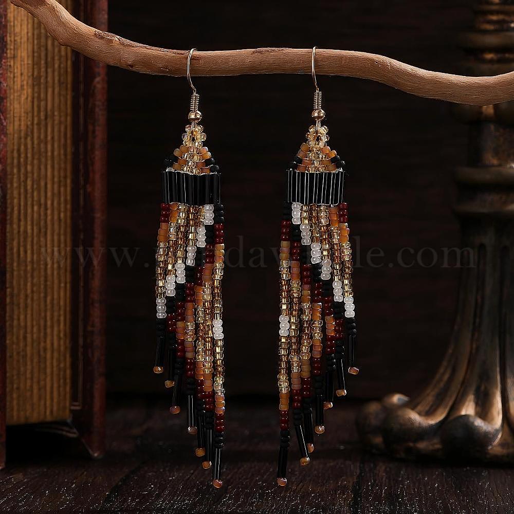 Богемные серьги-подвески ручной работы из стеклянного бисера., треугольник шаблон, золотые