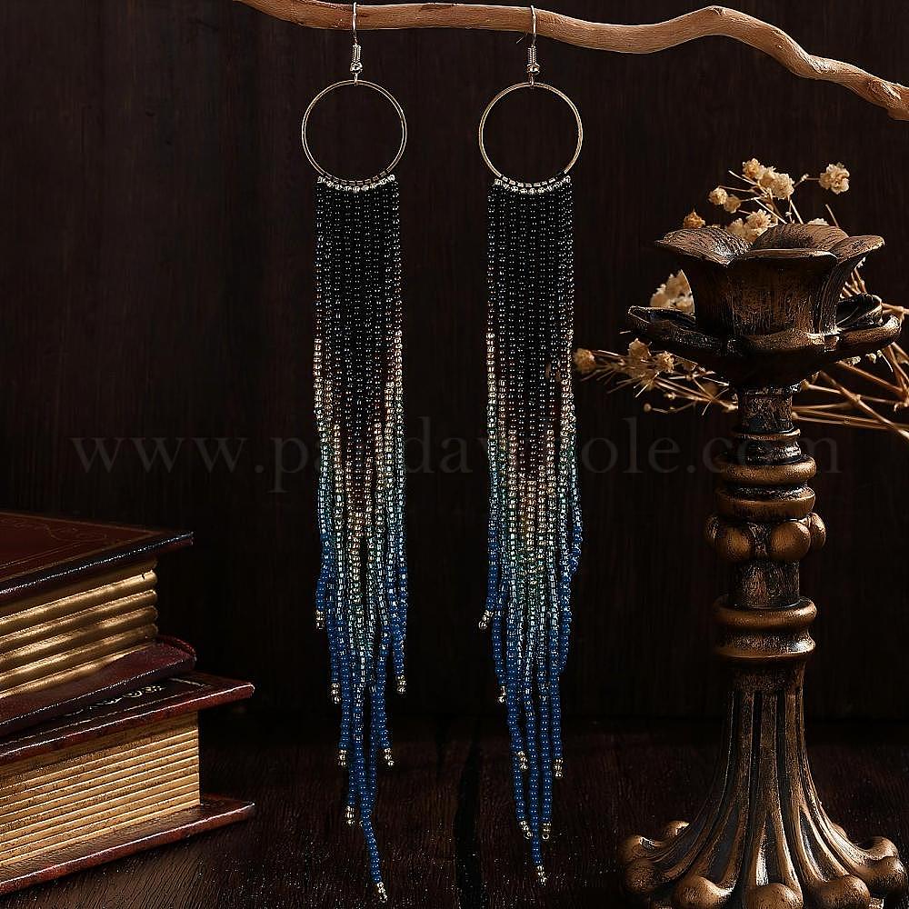 Богемные серьги-подвески ручной работы из стеклянного бисера., кисточка