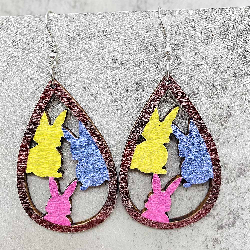 Пасхальные деревянные серьги-подвески, кролик, платина