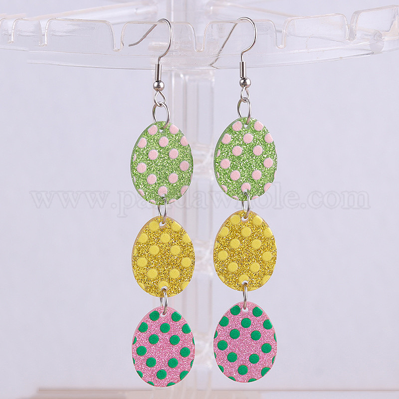 Пасхальные акриловые серьги-подвески с блестками, платина