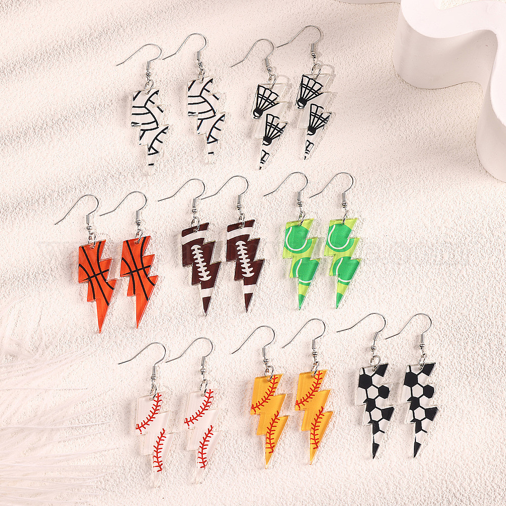 Акриловые серьги-подвески на спортивную тематику, молния с узором, платина (03AESE)