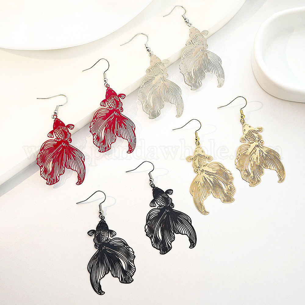 • Золотистый Серьги-подвески из термоклея с краской, рыба, платина, золотые, 66x31 мм
