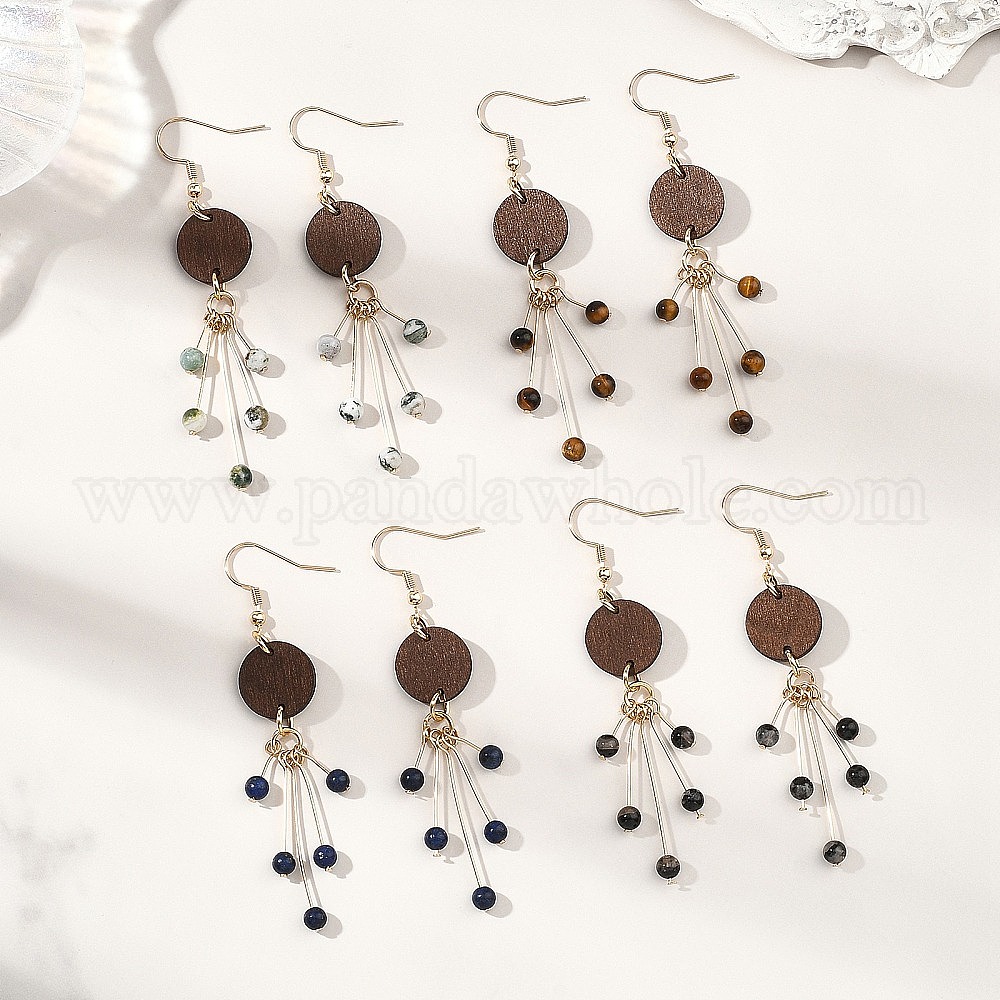 Болтаться серьги природный драгоценный камень, с тополевой древесиной, 316 Фурнитура для сережек из хирургической нержавеющей стали, плоско-круглые, золотой свет