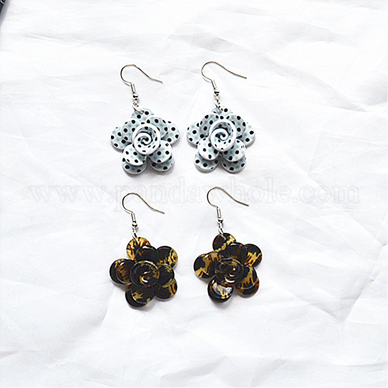 Серьги с подвесками из акрила и сплава, цветок, платина (03B1J2)