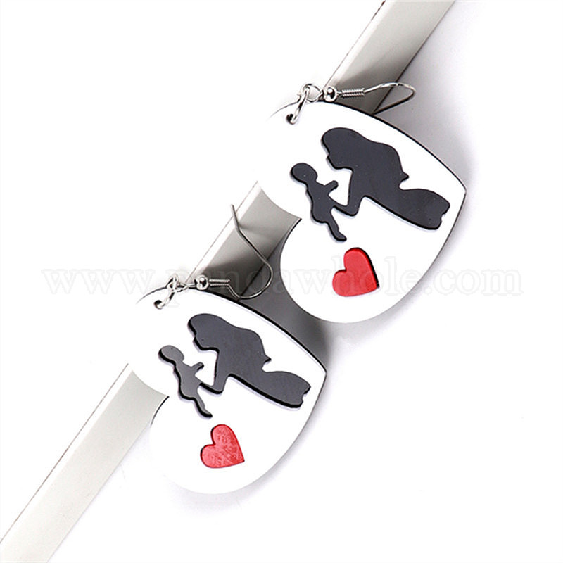 • Белый Акриловые серьги-подвески ко Дню матери, Сердце с силуэтом матери и ребенка., платина, белые, 42x38 мм