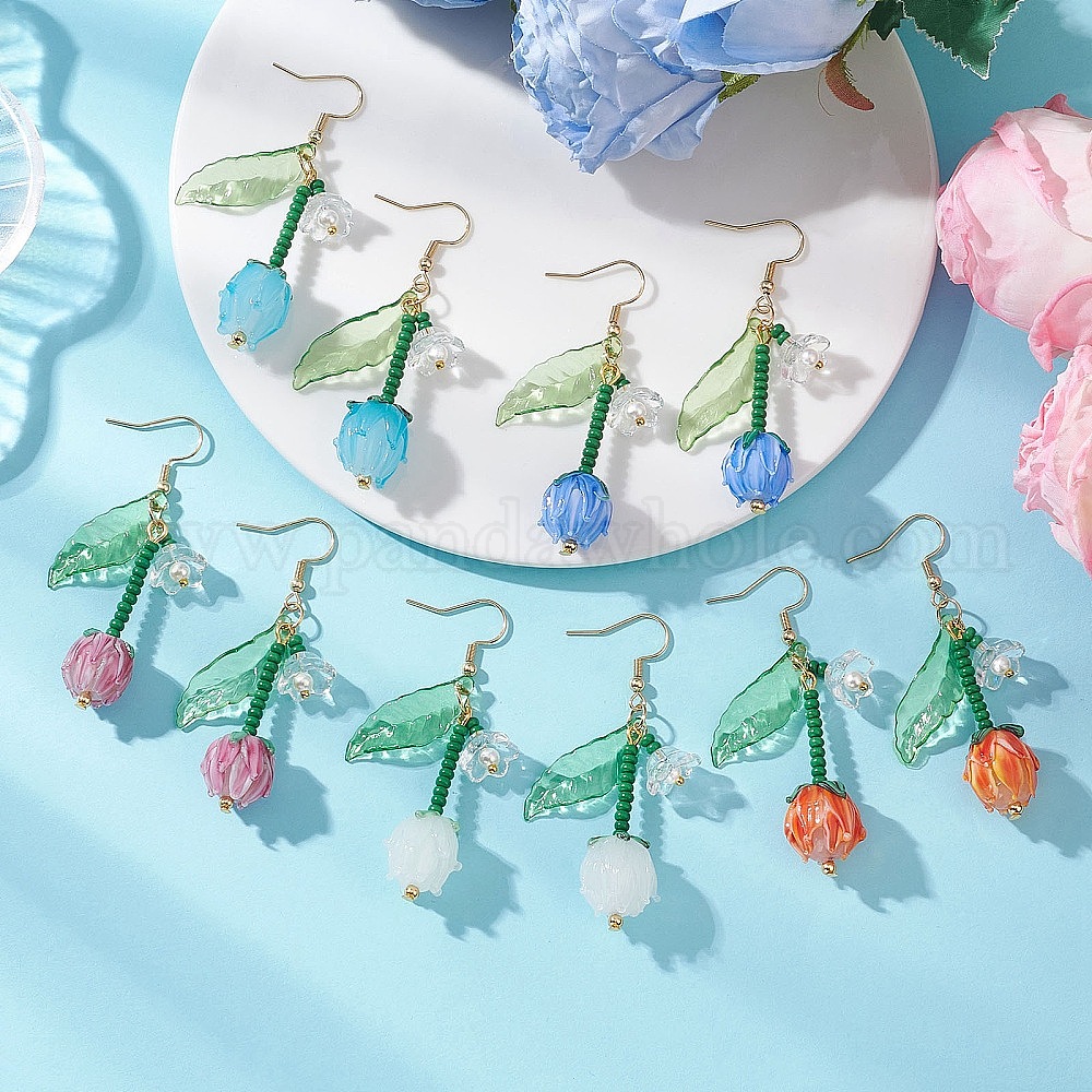 Висячие серьги из акрила и стекла., цветок, с фурнитурой для сережек из нержавеющей стали, золотые