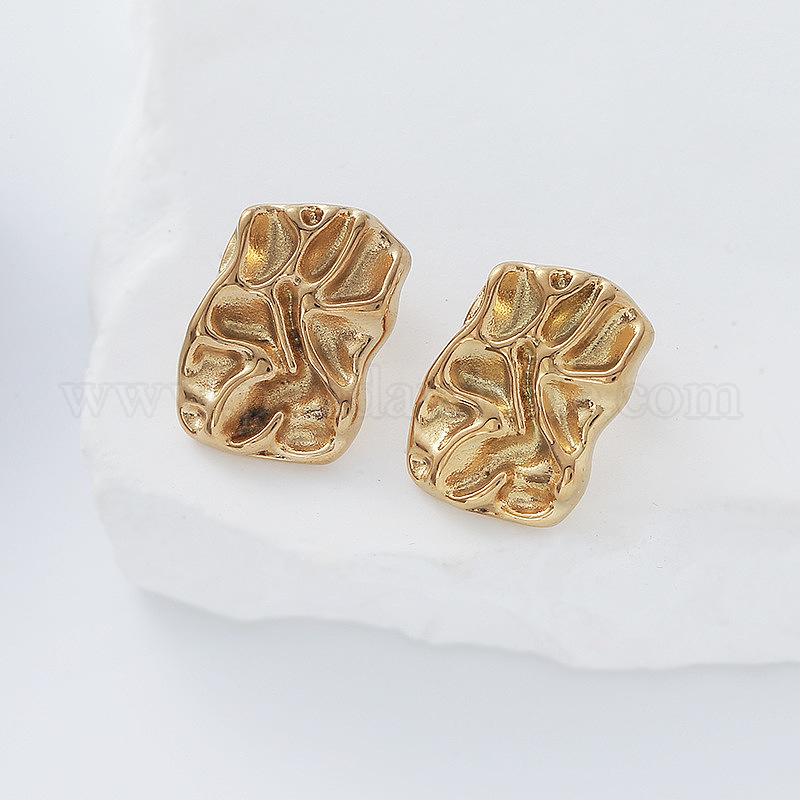 • Золотой 304 из нержавеющей стали серьги, мятый прямоугольник, золотые, 22x16 мм