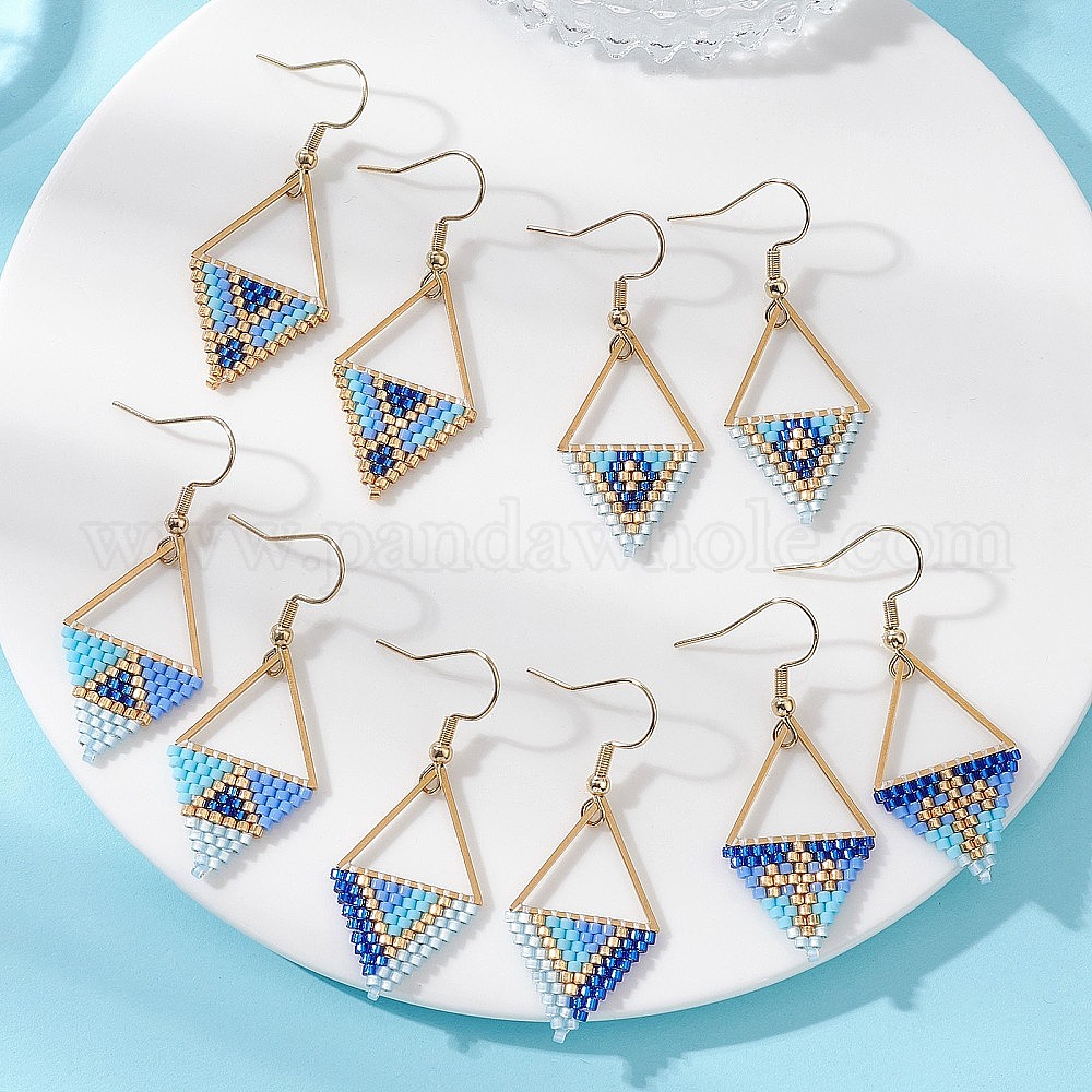 5 пары 5 стили: серьги-подвески из стеклянного бисера и 304 нержавеющей стали, ромб, золотые
