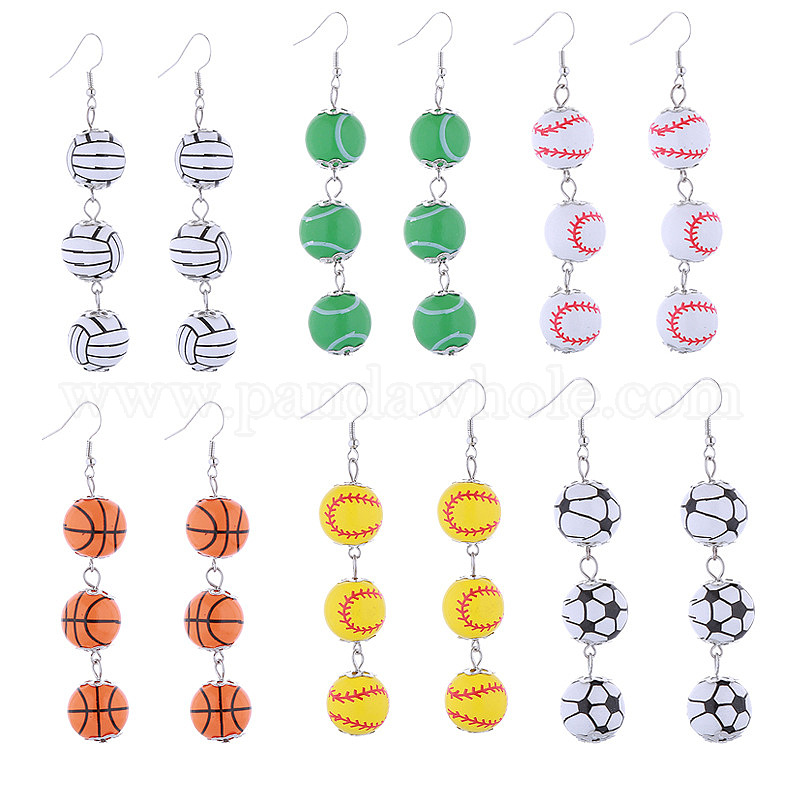 Серьги-подвески из сплава и дерева в спортивной тематике, платина
