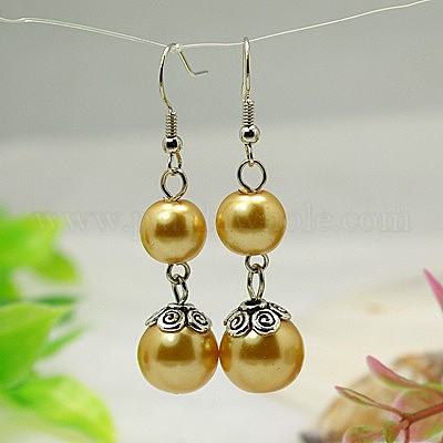 Модный стекло жемчужина мяч болтаться серьги, с тибетского стиля шарик крышки и крючки латуни серьги, 50 мм