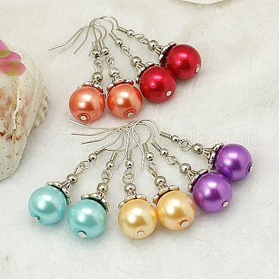 Модные тибетском стиле мяч болтаться серьги, со стеклянными жемчужными бусинами и латунными крючками для серег, 42 мм
