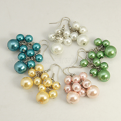 Кластерные серьги моды стекла жемчужные, с латунными крючками для серег, 43 мм