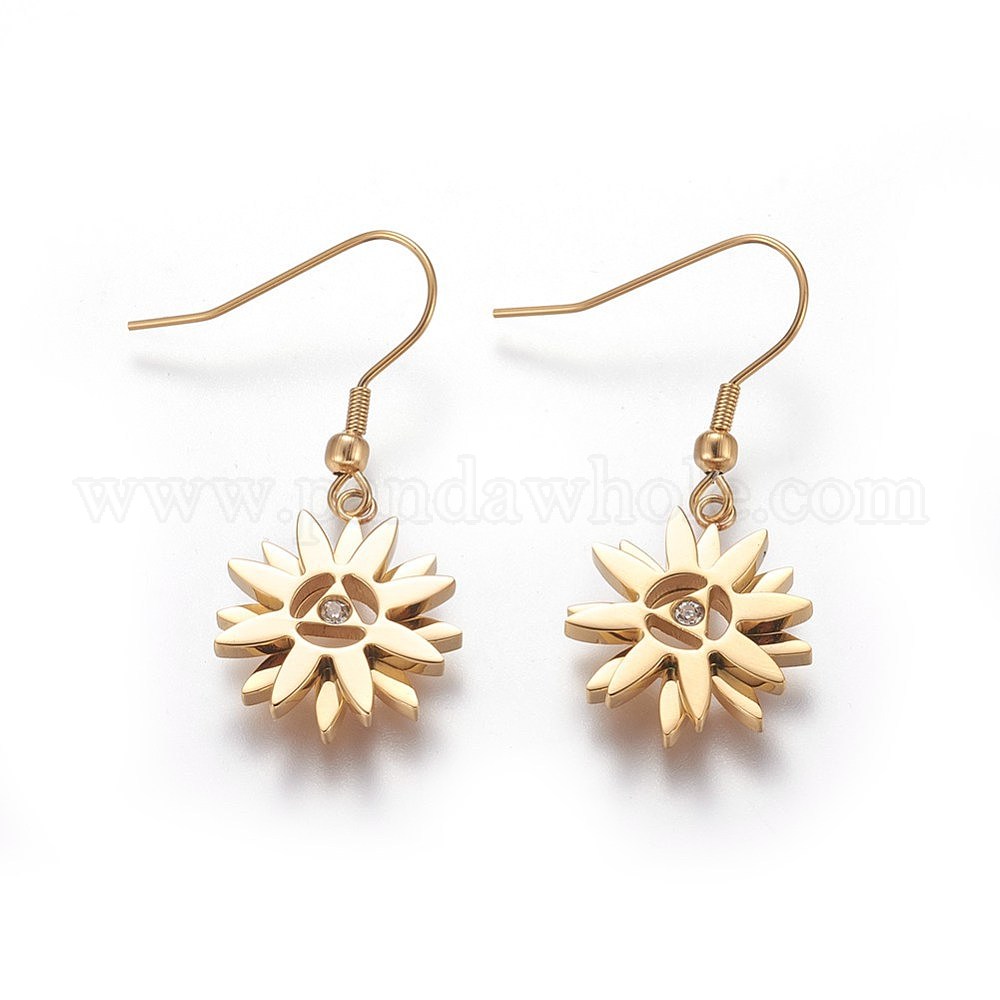 304 из нержавеющей стали болтаться серьги, с кубического циркония, цветок