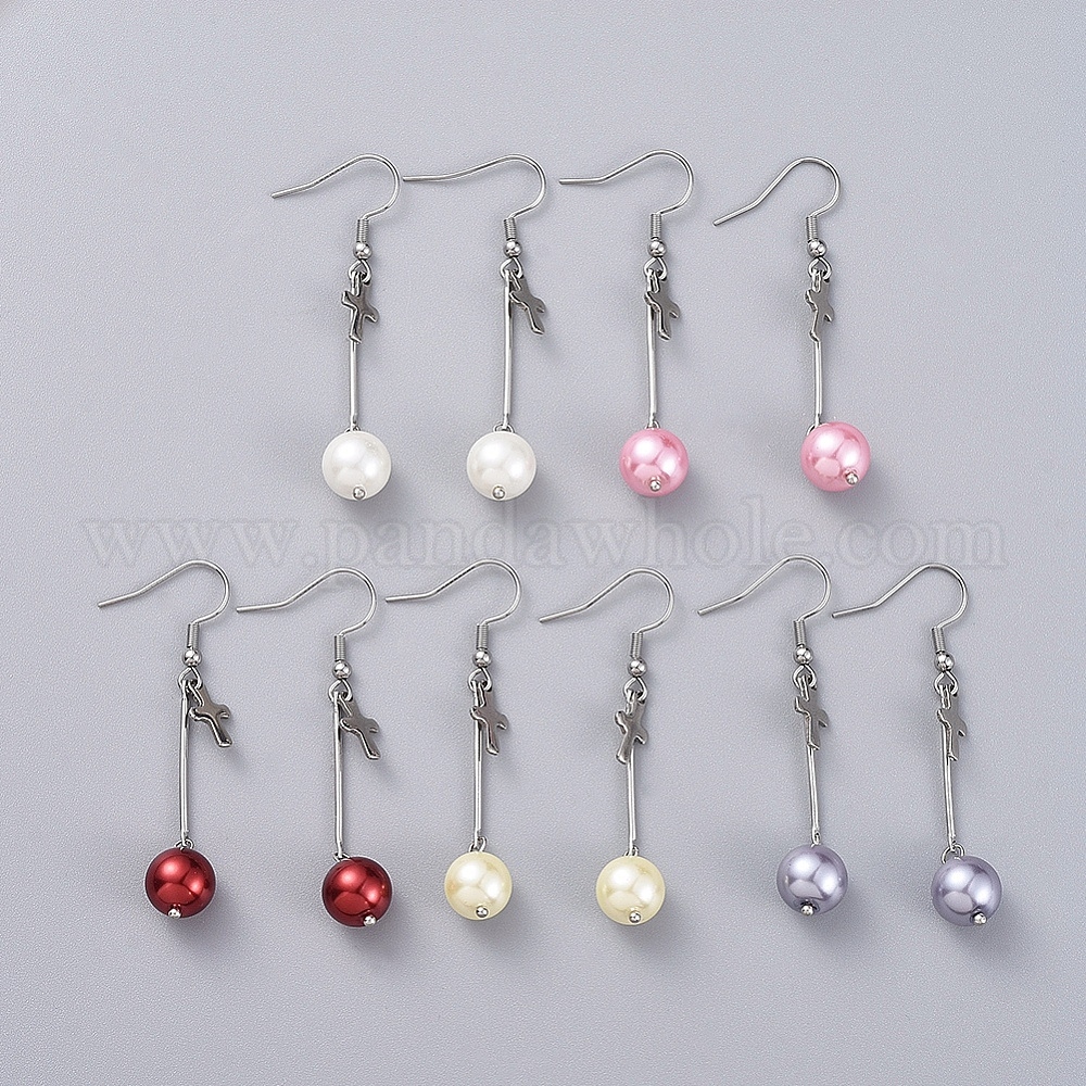 Стеклянные под жемчуг болтаться серьги, с металлическими стержнями из платины, 304 подвески из нержавеющей стали и 316 хирургические крючки для серег из нержавеющей стали., крестик