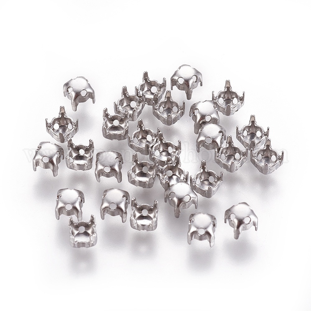 • Нержавеющая Сталь Цвет Не тускнеет 316 хирургическая нержавеющая сталь пришивает штыри, настройки когтей для остроконечных страз, Настройки зубца, круглые, цвет нержавеющей стали, 4x3.8 мм, отверстие : 0.8 мм, лоток : 4 мм
