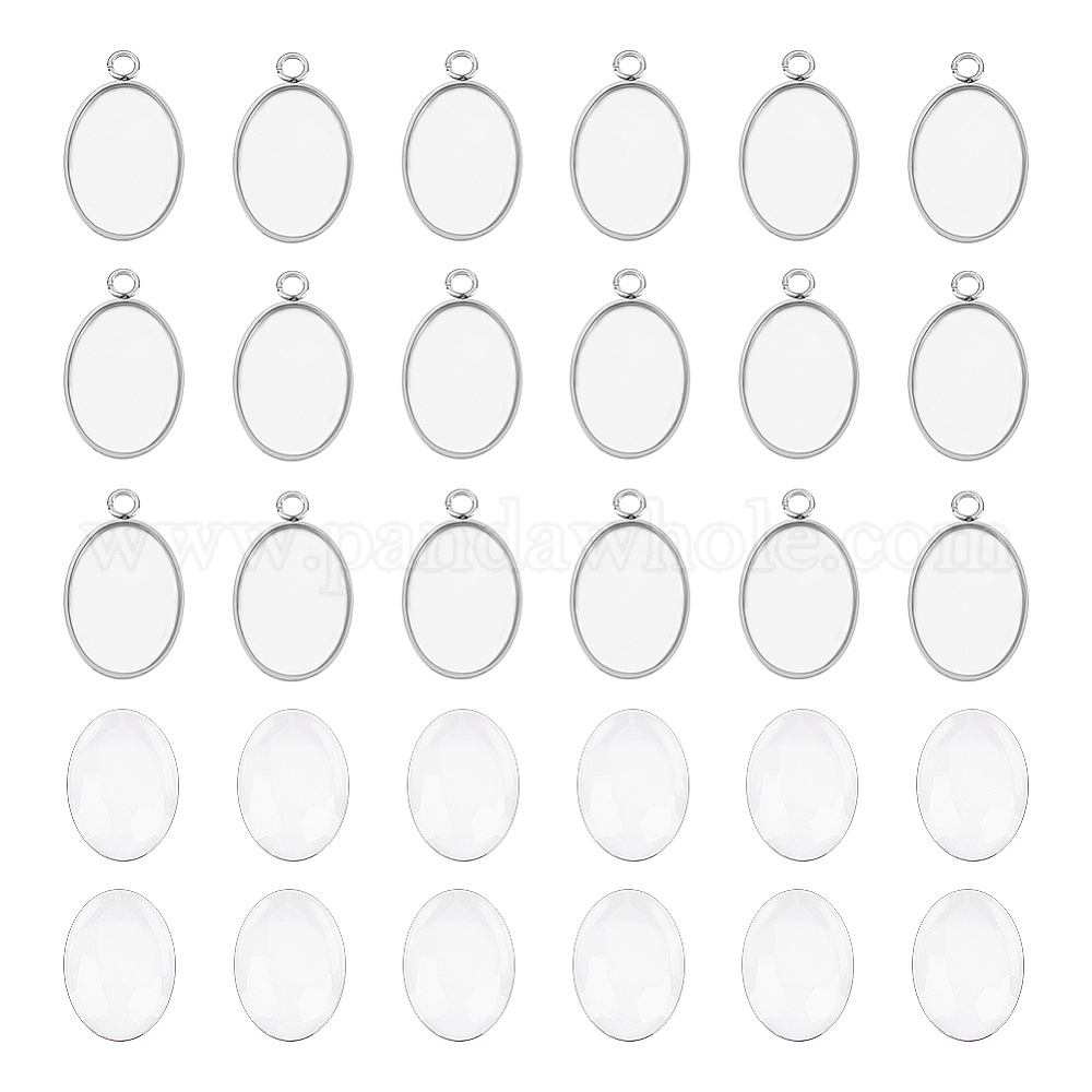 20шт 304 подвеска из нержавеющей стали с кабошоном, чашки безель с краями, овальные, с прозрачными овальными стеклянными кабошонами 20шт.