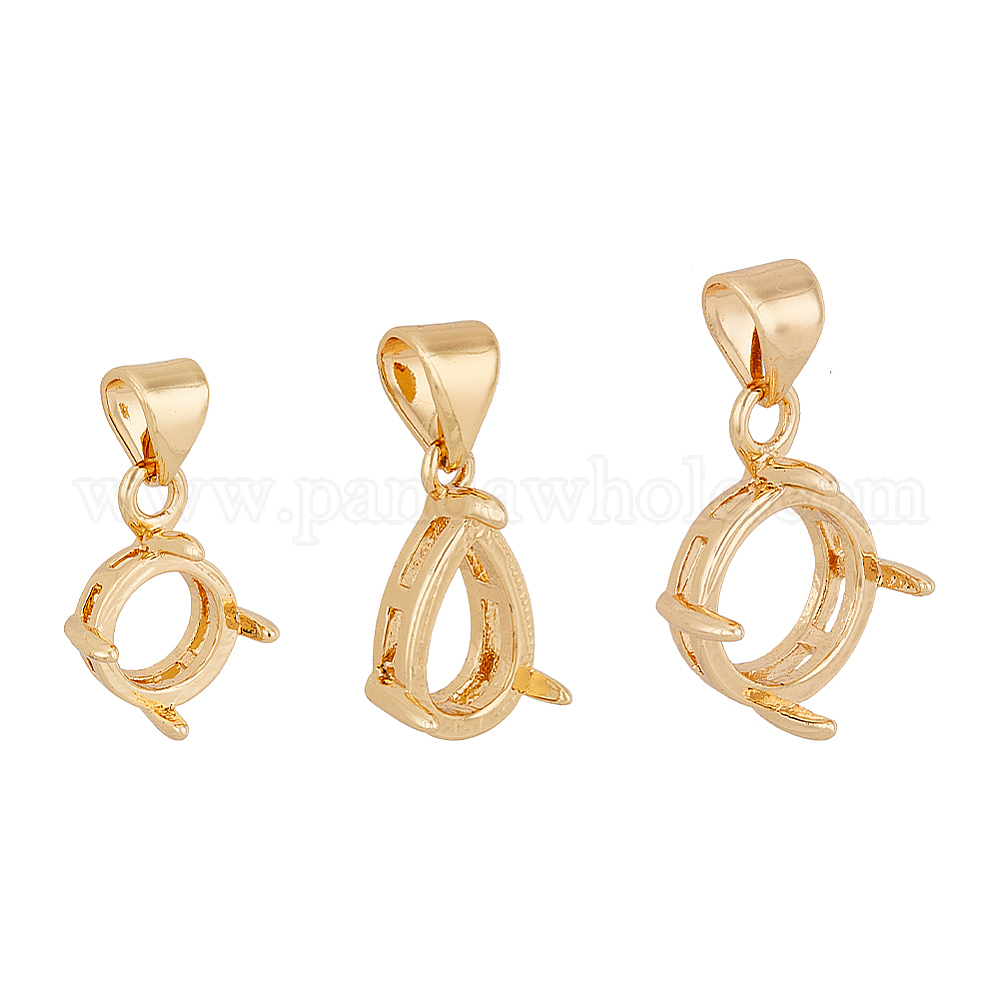 3 шт. 3 стили латунный кулон с настройками кабошона, подвеска в виде корзины с креплением на шпильках, подвесные оправы с открытой задней рамкой, плоский круглый и слезинка