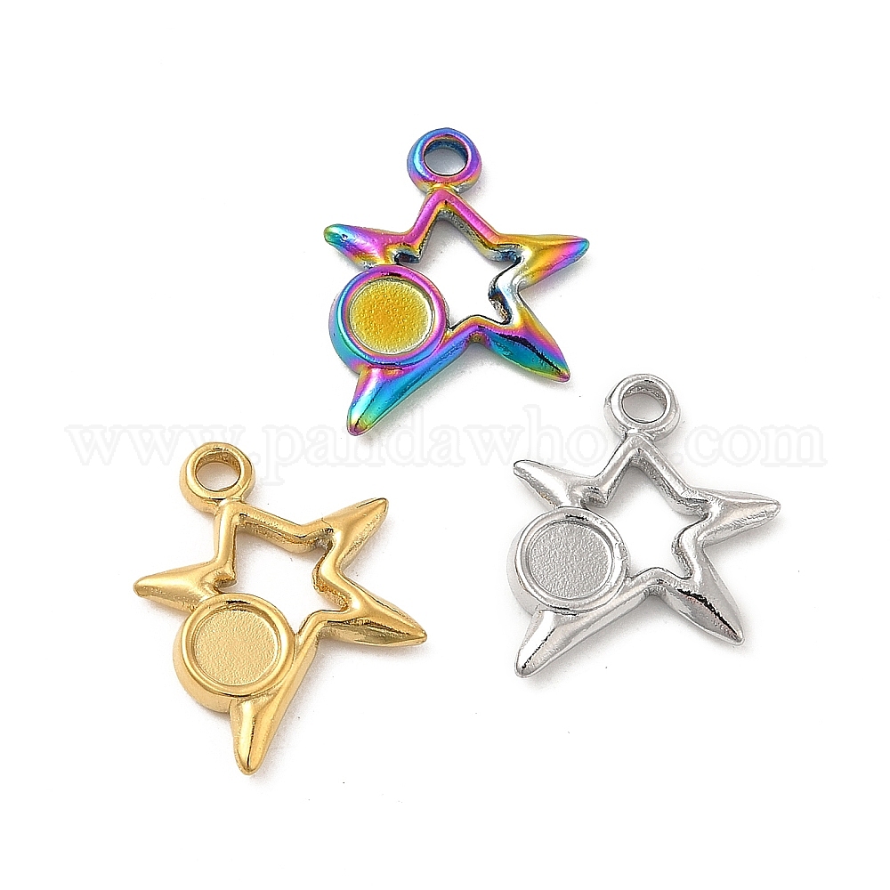 304 подвески из нержавеющей стали настройки кабошон, звезда с круглым подносом