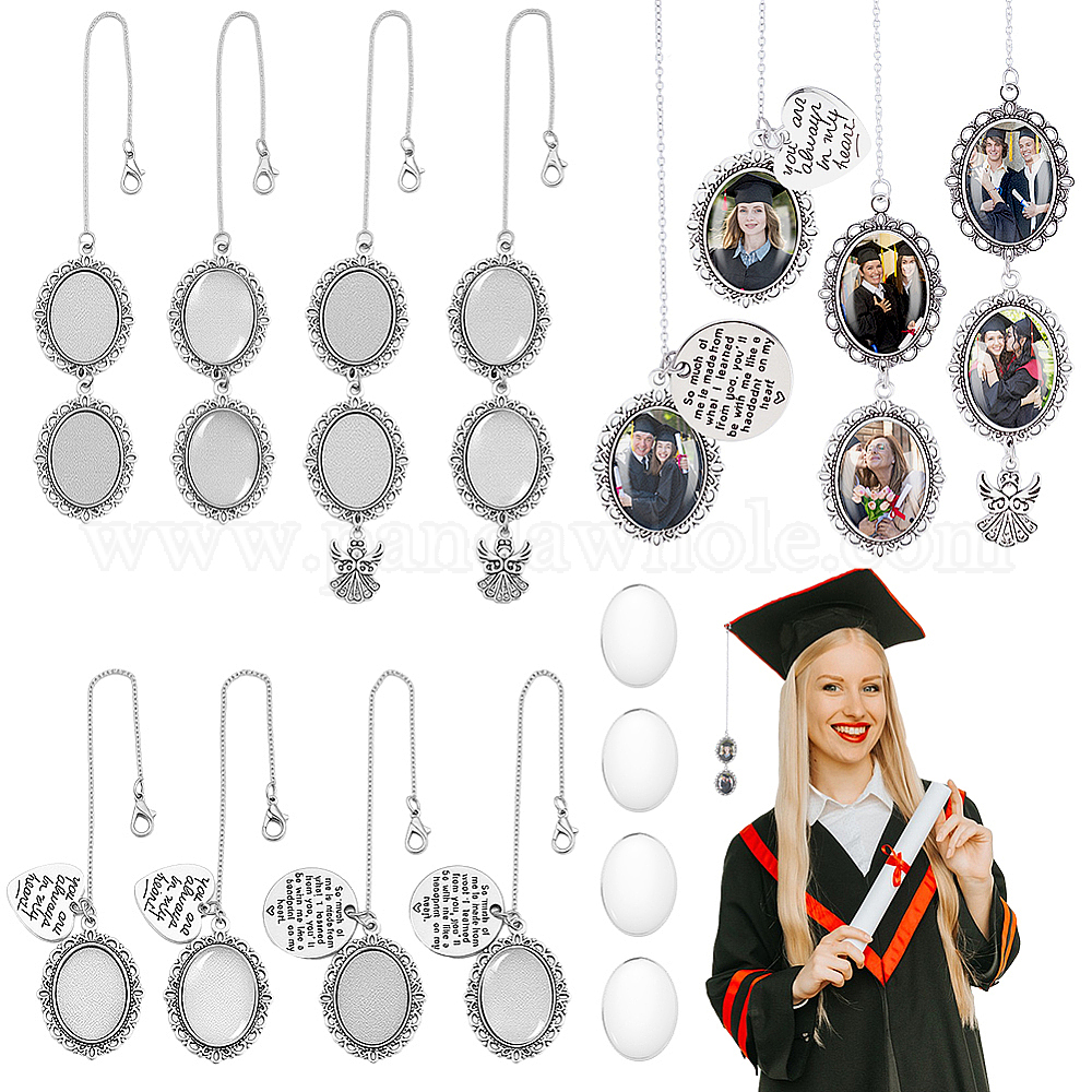 16шт 4 стили подвеска из сплава настройки кабошон, с латунным удлинителем цепи, памятные фото подвески на шапку, с овальными стеклянными кабошонами 16шт.