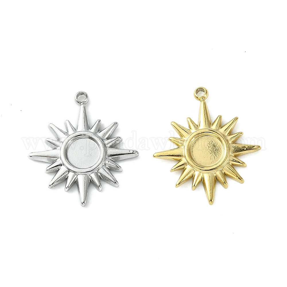 • Настоящее золото 14K 304 Настройки кабошон из нержавеющей стали кулон, солнце, реальный 14 k позолоченный, лоток : 4 мм, 15.5x13.5x1.5 мм, отверстие : 1 мм