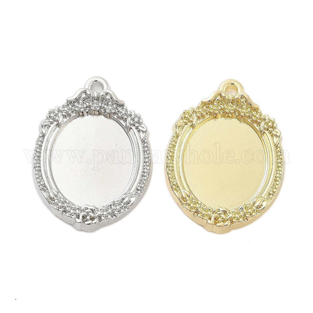 • Золотой Подвеска кабошона, овальные, золотые, лоток : 22x19 мм, 36x27x4 мм, отверстие : 2 мм