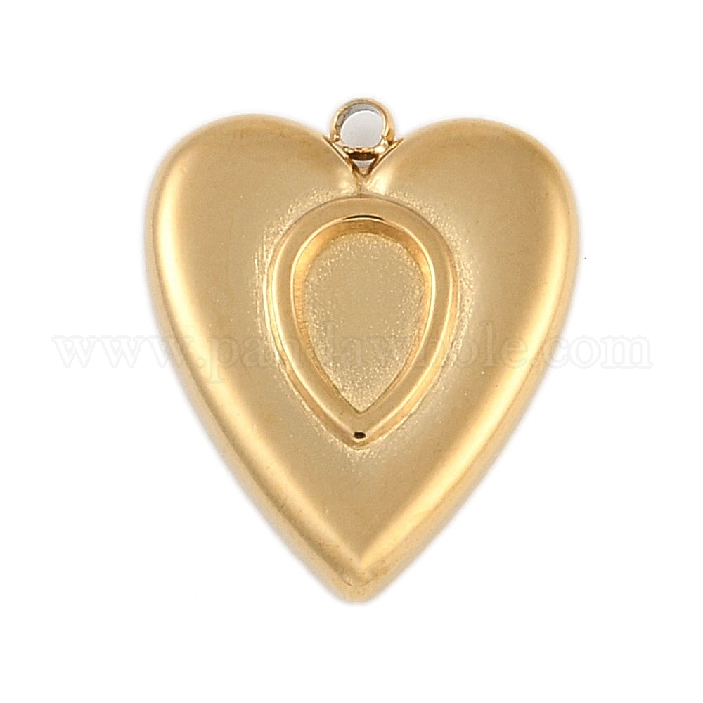 • Настоящее золото 18K Ионное покрытие (IP) 304 подвеска с покрытием из нержавеющей стали в форме кабошона, сердце, полированный, реальный 18 k позолоченный, лоток : 5.5x3.5 мм, 15.5x13x2.5 мм, отверстие : 1.2 мм