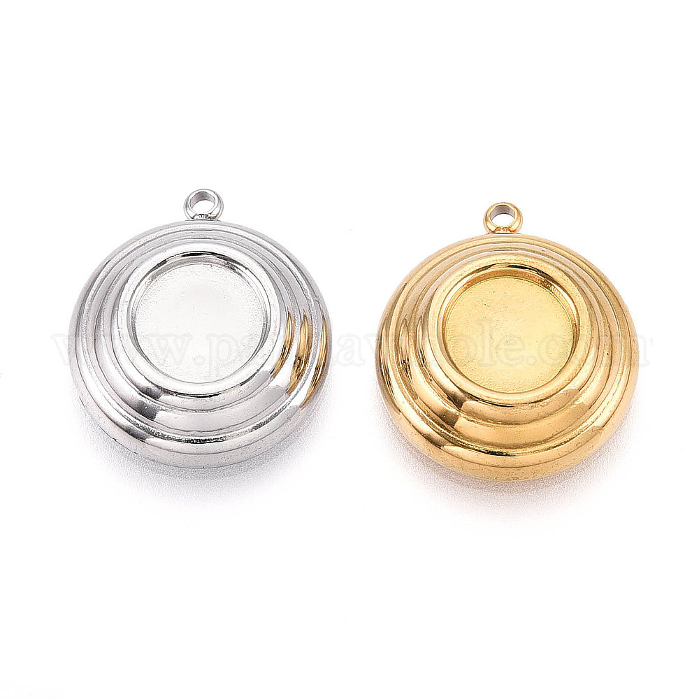 304 Настройки кабошон из нержавеющей стали кулон, плоско-круглые, ионное покрытие (ip)
