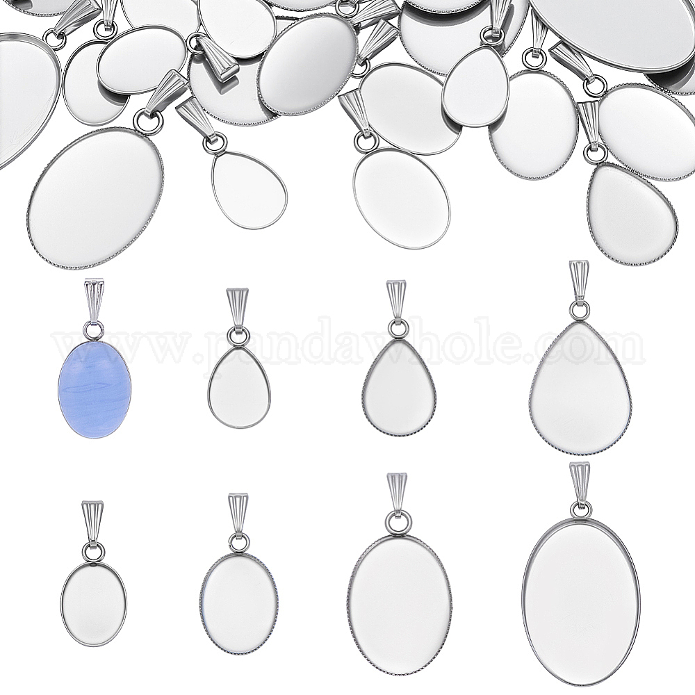 40шт 8 стили 304 настройки подвески из нержавеющей стали кабошон, цвет нержавеющей стали, разнообразные